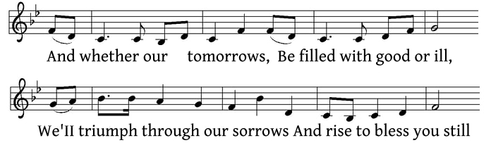 The brief words “without number” was an acknowledgment to fellow hymn writer Timothy Dudley Smith for his encouragement and an expression of homage to Dudley Smith because this was one of his favorite phrases. In the final stanza, the phrase “we’ll triumph through our sorrows and rise to bless you still” was, according to the author, a “reflect[ion on] my remembered determination of youthful days to overcome acute disappointment and personal loss.”